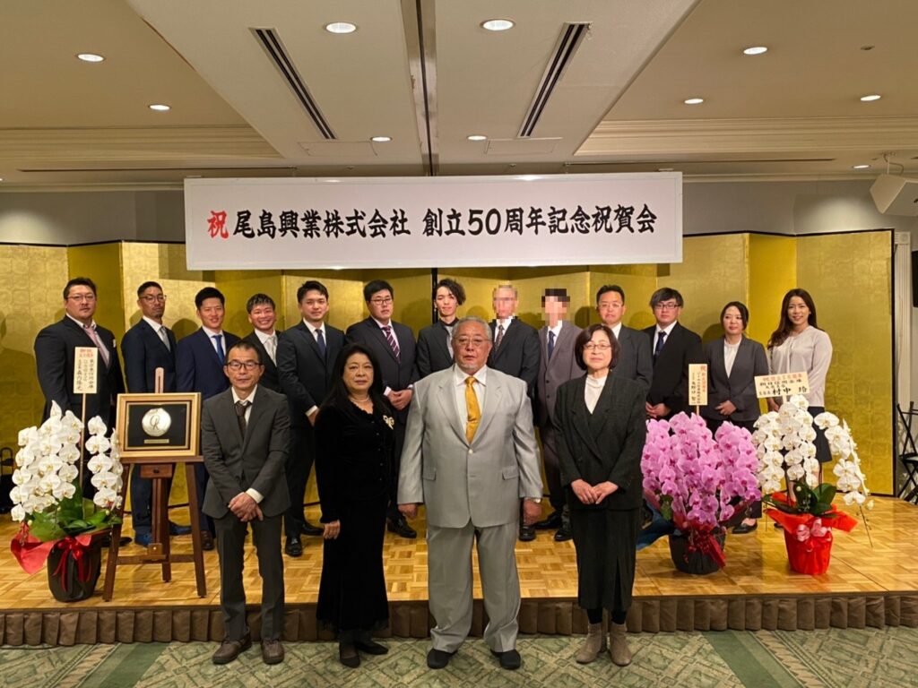 来賓を呼んで盛大に!なんて声もありましたが、コロナ禍なので社員の家族を呼んでお祝いしました。社長にサプライズで記念ムービーや金の名刺、日めくりカレンダー、チームに分かれて余興するなど身内だけですが大いに盛り上げ感動しました。50周年という素晴らしい節目で共にお祝い出来たことを大変嬉しく思います。