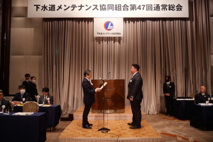 下水道メンテナンス協同組合より、管路内清掃工の部門で表彰していただきました。