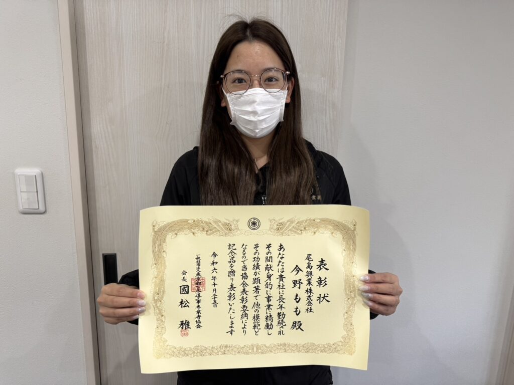 協会から精励社員表彰として表彰状とグラスをいただきました。これからも下水道維持管理業務に従事していきたいと思います。