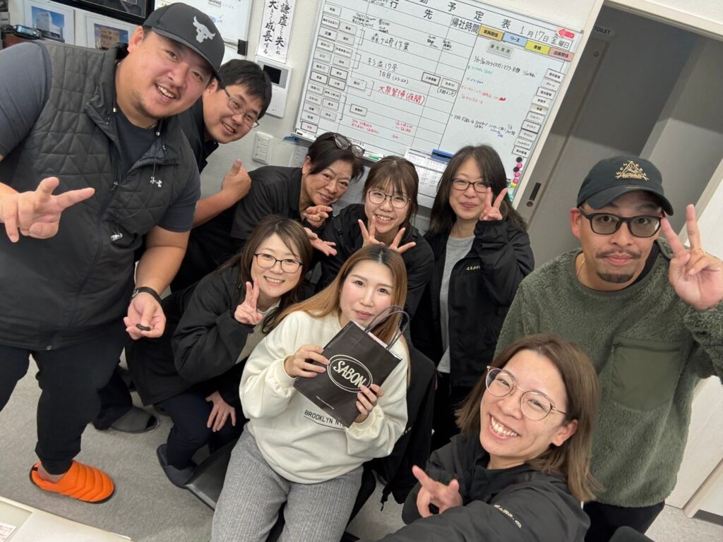 頼れる事務員さんが産休に入ります。忙しい時期を共に戦って現場班のサポートをしてくれました。広い視野でよく気が付く性格でとても頼もしかったです。一時とはいえいなくなるのは少し力不足を感じるのは正直なところです。ゆっくり休んでまた戻って来てねー。