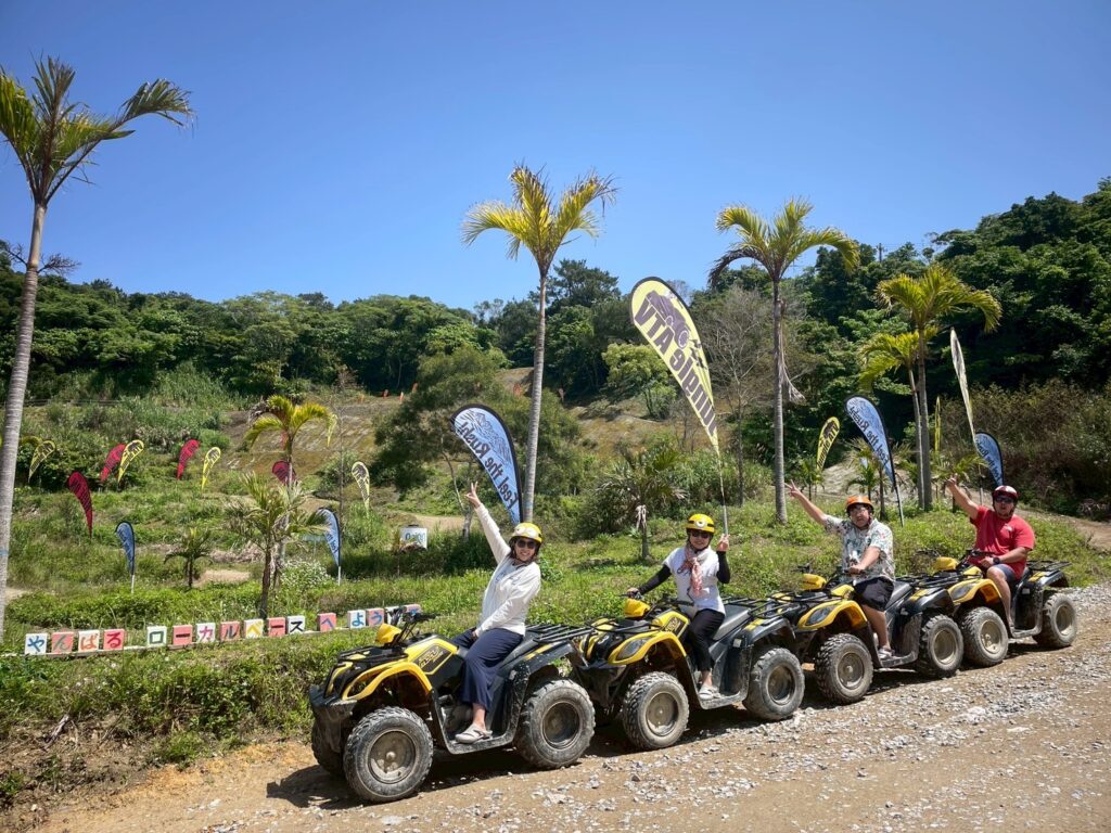 バギー部隊!体験時間は1時間で長く楽しめました。晴天で最高の気分!最初は平坦な道で慣らし運転し、うねうねしているジャングルまでたくさんコースが用意されていて思った以上に面白かったです。「やんばるローカルベースYOFUKE」
