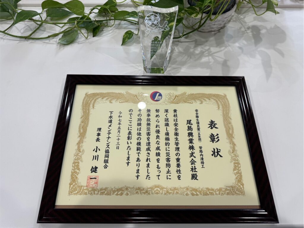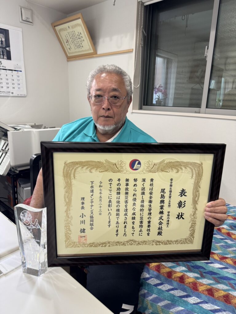 今回で三年連続の受賞となりました。評価内容は安全第一で無事故無違反、写真撮影項目のルール厳守や使用する道具と的確な選定、提出物期限を厳守すること、講習会などに参加することが掲げられます。そして緊急復旧作業に対する姿勢が重要であると認識しています。24時間365日対応出来る組織作りに注力しています。これからも第一線で下水道維持管理業務を遂行していきます。三年連続という偉業はとても素晴らしいことです。みんなで盛大にお祝いしましょうね。