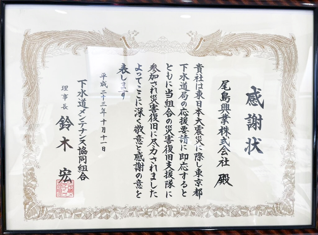 | 加盟団体 | ・下水道メンテナンス協同組合会員 ・東京都下水道工事専業者協会 ・多摩地域地下水道維持管理協会会員 ・下水道広報プラットホーム ・練馬東法人会 ・練馬土木協会 ・ツインドリル工法協会 |