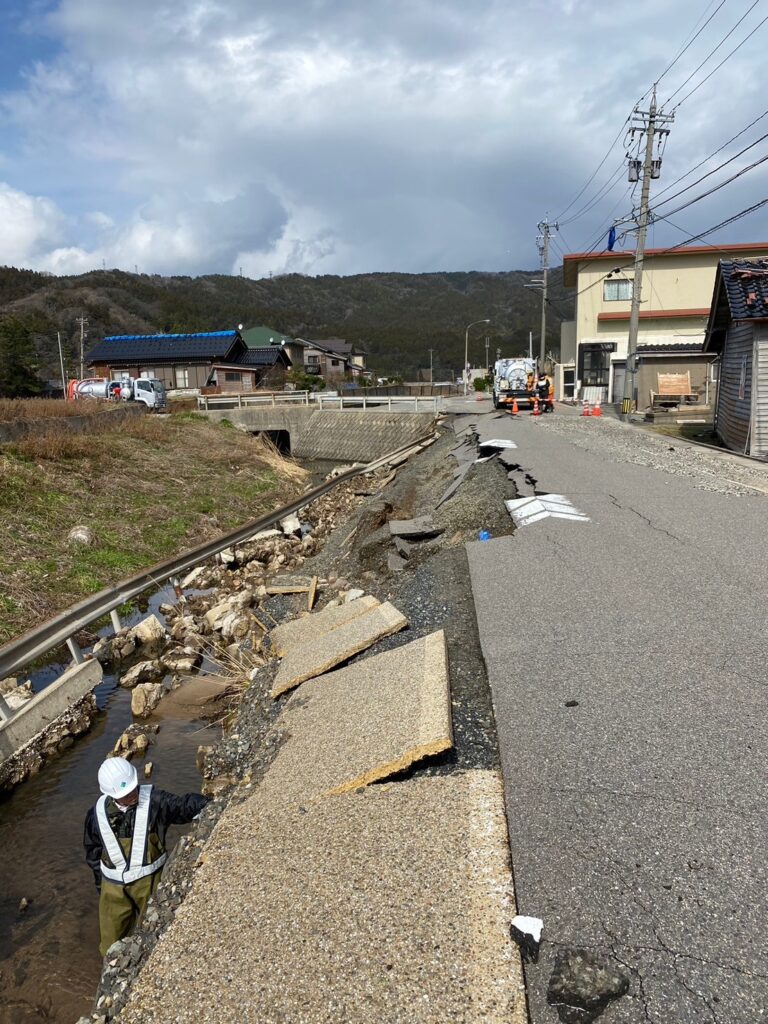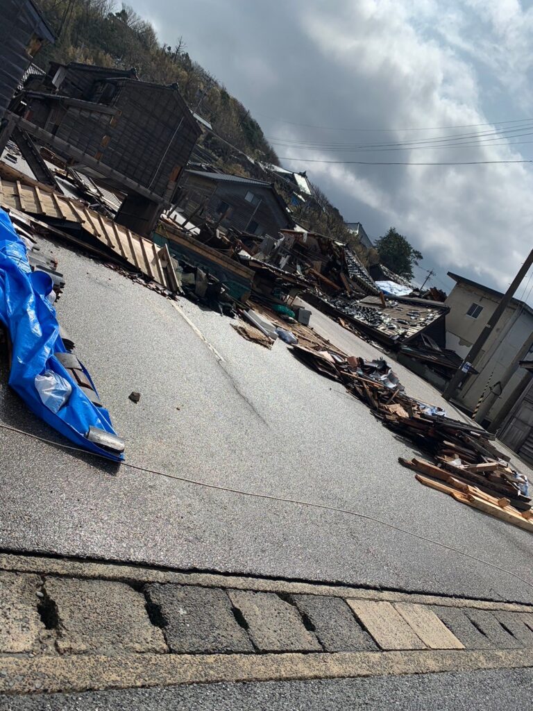 携わった社員達の感想を紹介したいと思います。①Eくん→率直に身体的、精神的に疲れたなと思いました。普段の仕事移動とは違う長距離移動、慣れない場所での集団生活、悪状況での作業など頭でイメージなどしたりしてましたが自分の思うようにいかなかったです。テレビや先発隊からの話で被害の大きさは聞いたり見たりしましたが実際に現地で体感すると色々思うところがありました。前職のままだったら絶対に関わらない事でしたが尾島興業に入ってこの復興支援に携われた事誇りに思います。②Oくん→復興支援に携われたこと誇りに思います。水道、下水道が未だ通ってない中、仮設住宅を建てるところの調査をやらせていただき、少しはお役に立てたかなと思います。被災地の方達と話す機会もあり、胸がすごく苦しくなったことは記憶に新しいです。しかし住宅が倒壊してる中、笑顔で明るく接していただき、「逞しい、強いな」という印象を多く受けました。やれることはまだいっぱいあります。また行けるなら是非行きたいと思いました。③Kくん→今回仕事で復興支援と言うなかなか経験できない事を人生初めて行えた事とても良かったと思っています。行く前は不安でしかなくもし何かあればと思うと…腰が重かったのは事実です。家族も凄く心配をしてましたが頑張ってと理解をして送り出してくれたことは感謝です。普段の日常が一瞬であのような事になると思うと他人事ではなくいつ自分や家族や親戚や仲間たちに降り掛かると考えたら恐ろしくなりました。作業現場付近にて献花を目にした時は言葉にはならないくらい喪失感になりました。自分で見て聞いて体験しなければわからないこともあるんだとつくづく思い知らされた一週間でした。人生の節目40歳でこのような体験経験が出来て会社には感謝です。④Kくん→長距離運転に加えて、相部屋生活、電波のない部屋など色々と大変な所はありました。道もガタガタで毎日運転に気を遣う中、すれ違う現地の人たちに会釈されたり感謝されたりして、携われた事を良く思います。